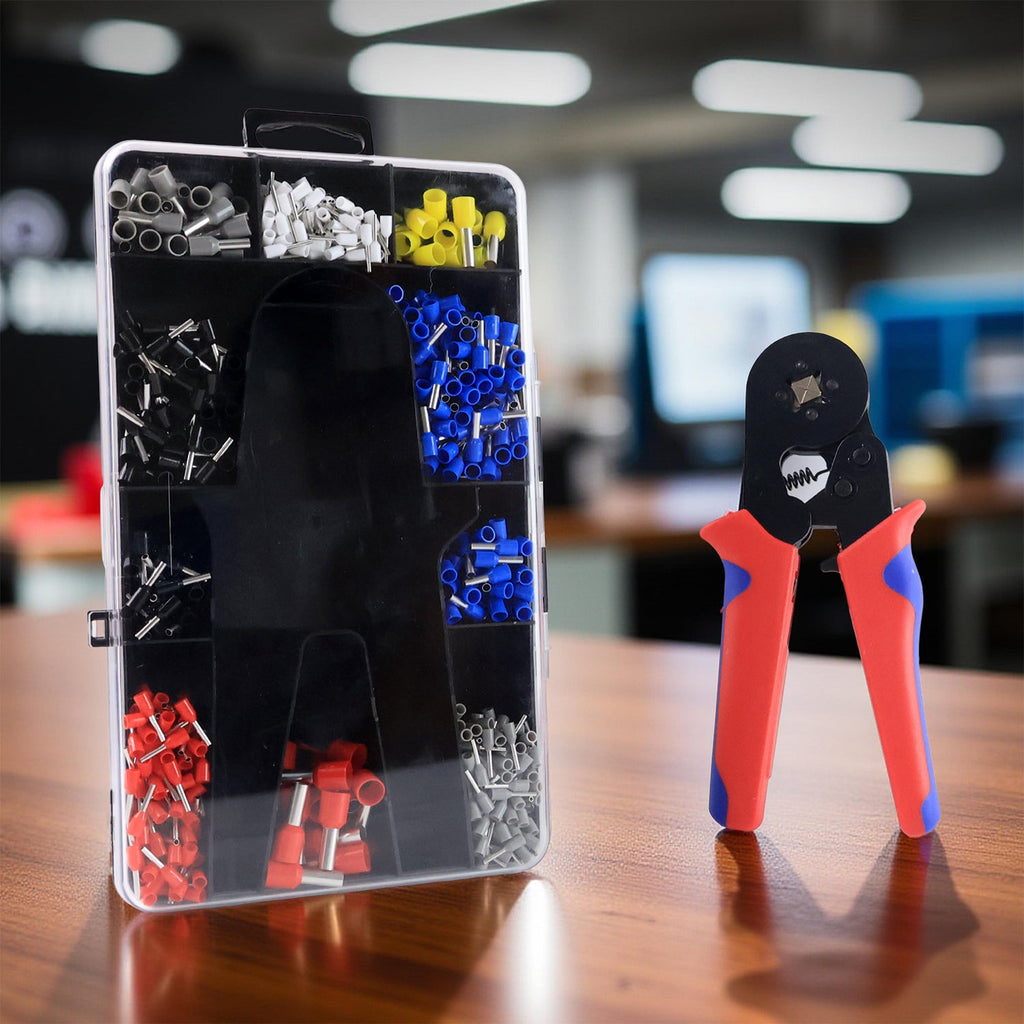 This all-in-one ferrule crimping tool kit is the perfect solution for electricians, DIY enthusiasts, and professionals working with terminal wiring. The set includes a high-performance self-adjusting ratcheting crimper plier and an organized storage box with approximately 1200 insulated wire ferrule terminals in various sizes and colors. Designed for efficiency, safety, and long-term use, this tool kit simplifies the process of crimping end sleeves (ferrules) and ensures strong and secure electrical connections for a wide variety of applications.