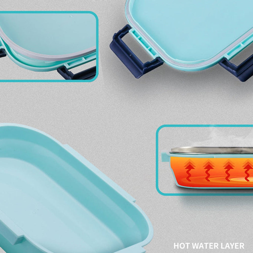 - This stainless steel tray is detachable, because another useful feature of this lunch box is that you can pour some hot water to heat the food before eating. This will keep the original taste of the food.